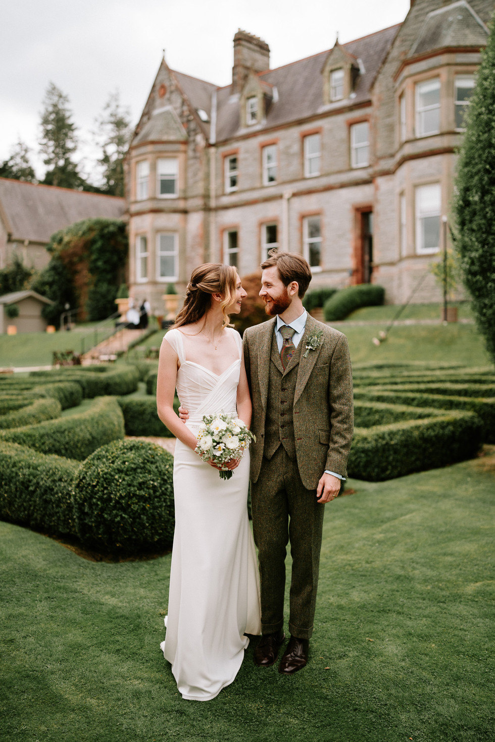 Magheramorne Estate is always stunning, but when the sun shows up, it becomes something else entirely. Olivia and Johann were lucky enough to have a beautiful outdoor ceremony in the gardens, surrounded by their favourite people with the coast as their backdrop.